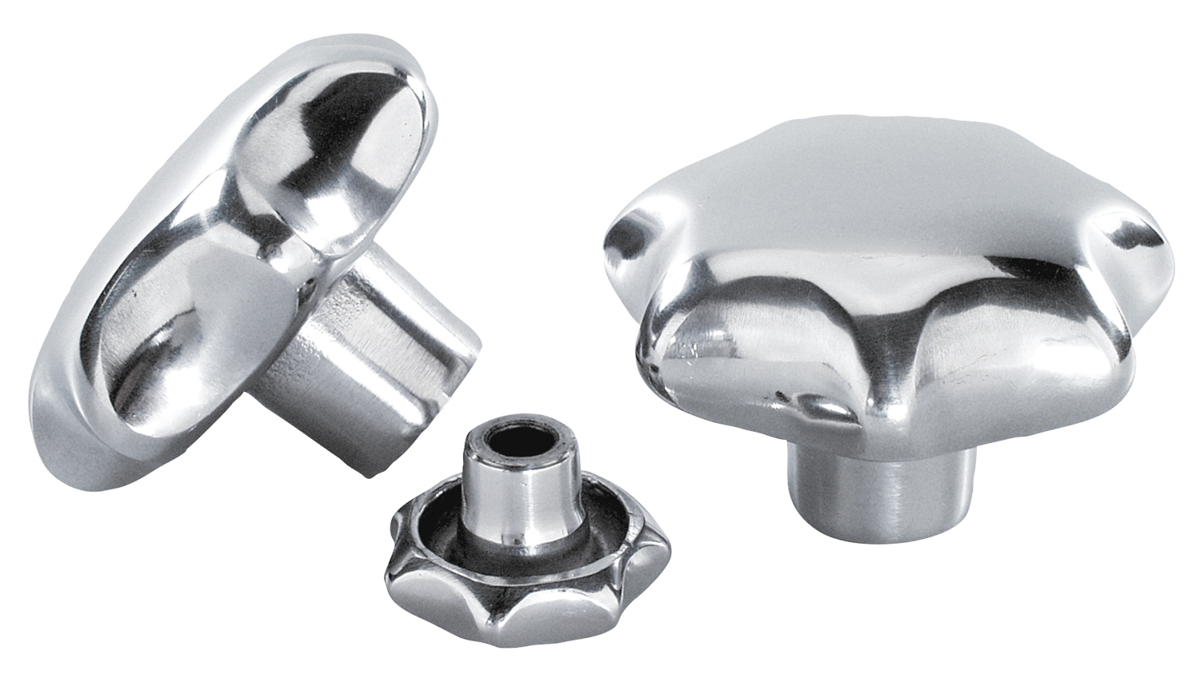 Star grips similar to DIN 6336, aluminium, Form D, thread countersunk