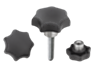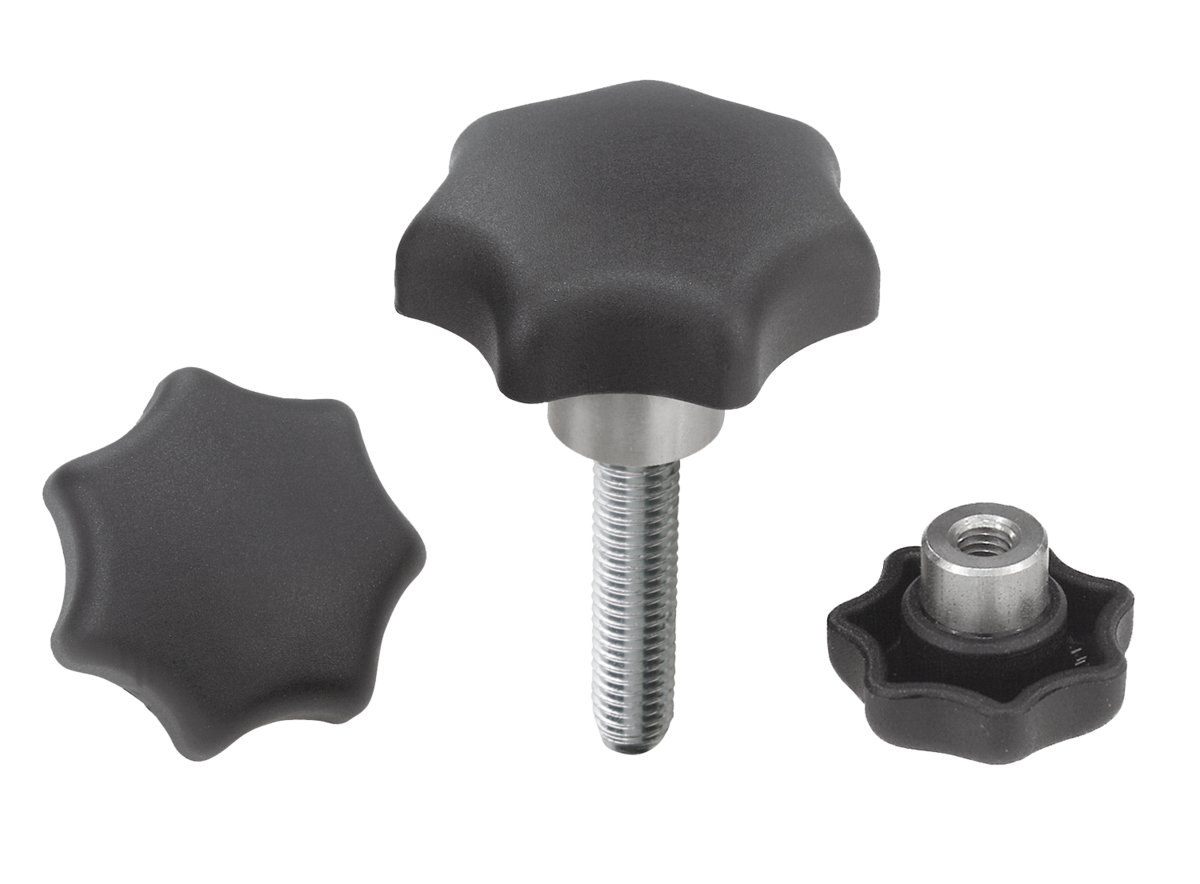 Star grips with projecting steel bush and blind hole or internal thread are especially suited for cross pinning.