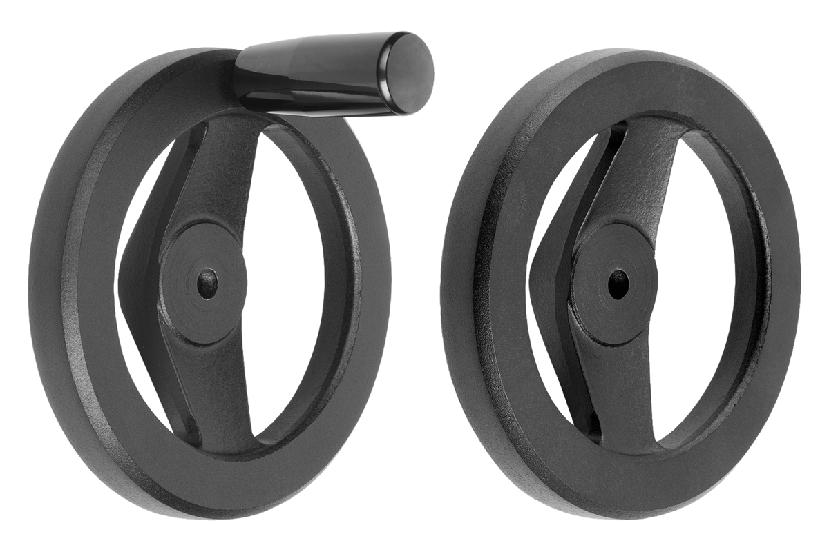 2-spoke handwheels, powder coated aluminium, with revolving cylindrical grip