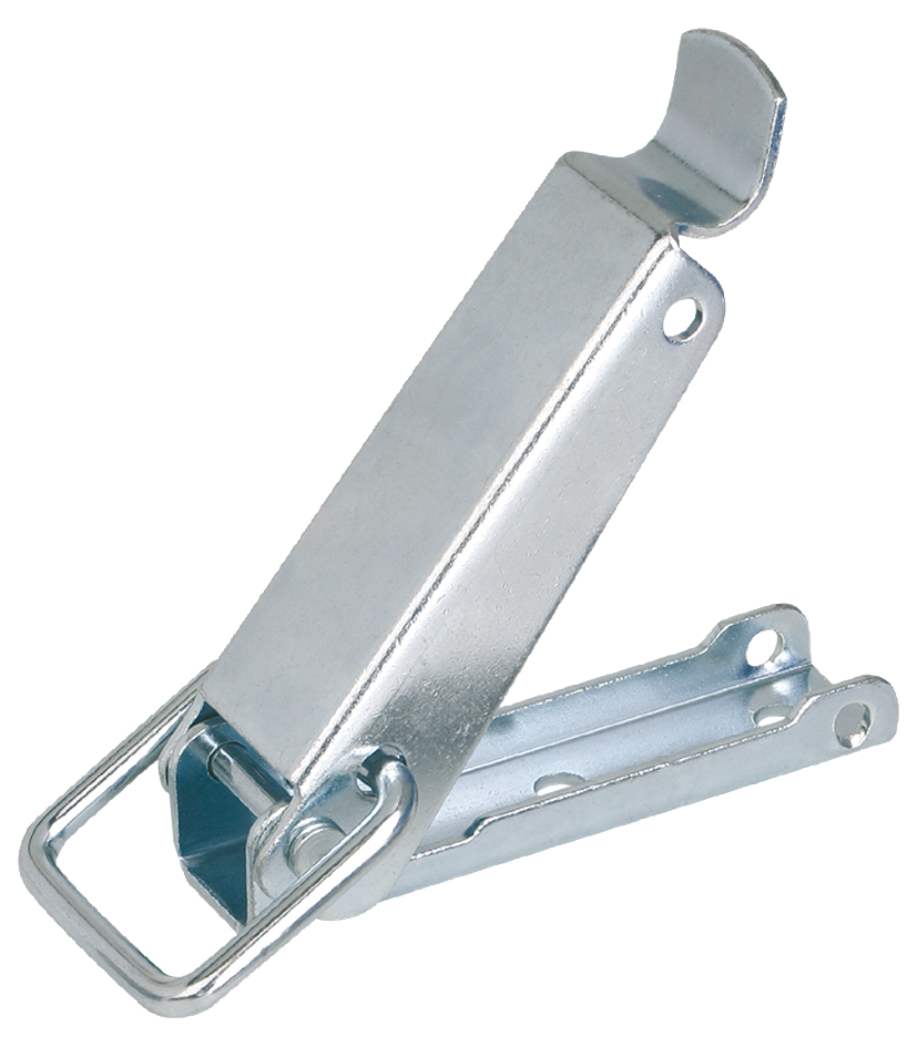 Latches with draw bail for securing and locking hatches, container lids, machine cladding etc. By exceeding the dead centre they resist vibration.