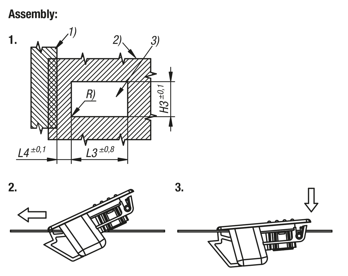 1. Produce a burr-free mounting cutout as shown in the drawing.