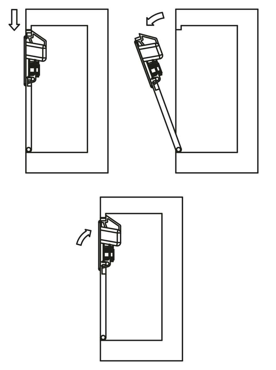 When the grip is pressed down, the latch retracts and the door can be opened. When the door is pushed to, a spring automatically latches it shut.