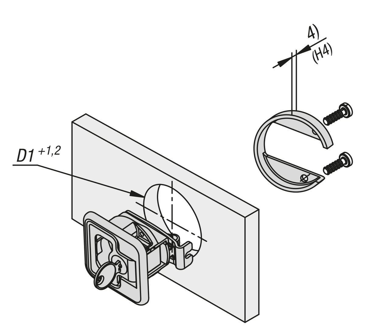 2) Mounting cutout