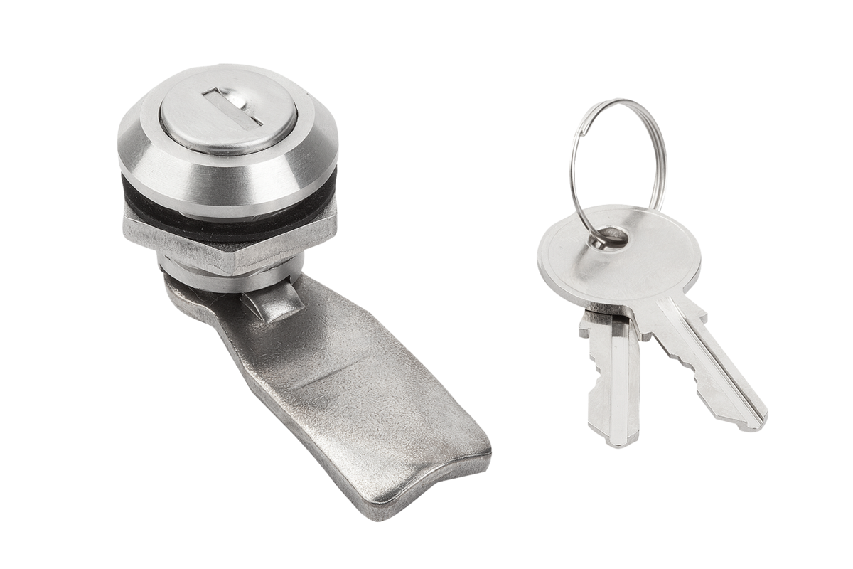 Lockable quarter-turn lock for right or left mounting with 90° closing. The quarter-turn lock can be installed pre-assembled. This lockable quarter-turn lock is supplied with 2 keys. The key can be removed in both the closed and open position. The cylinder locks have a single-key system i.e. the same key works in all locks (lock type 1333).