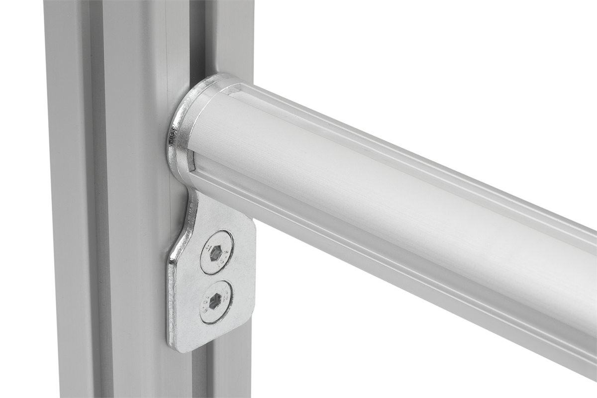 Fastened with M6 screw in Ø30 profile tube using an M6 threaded insert.