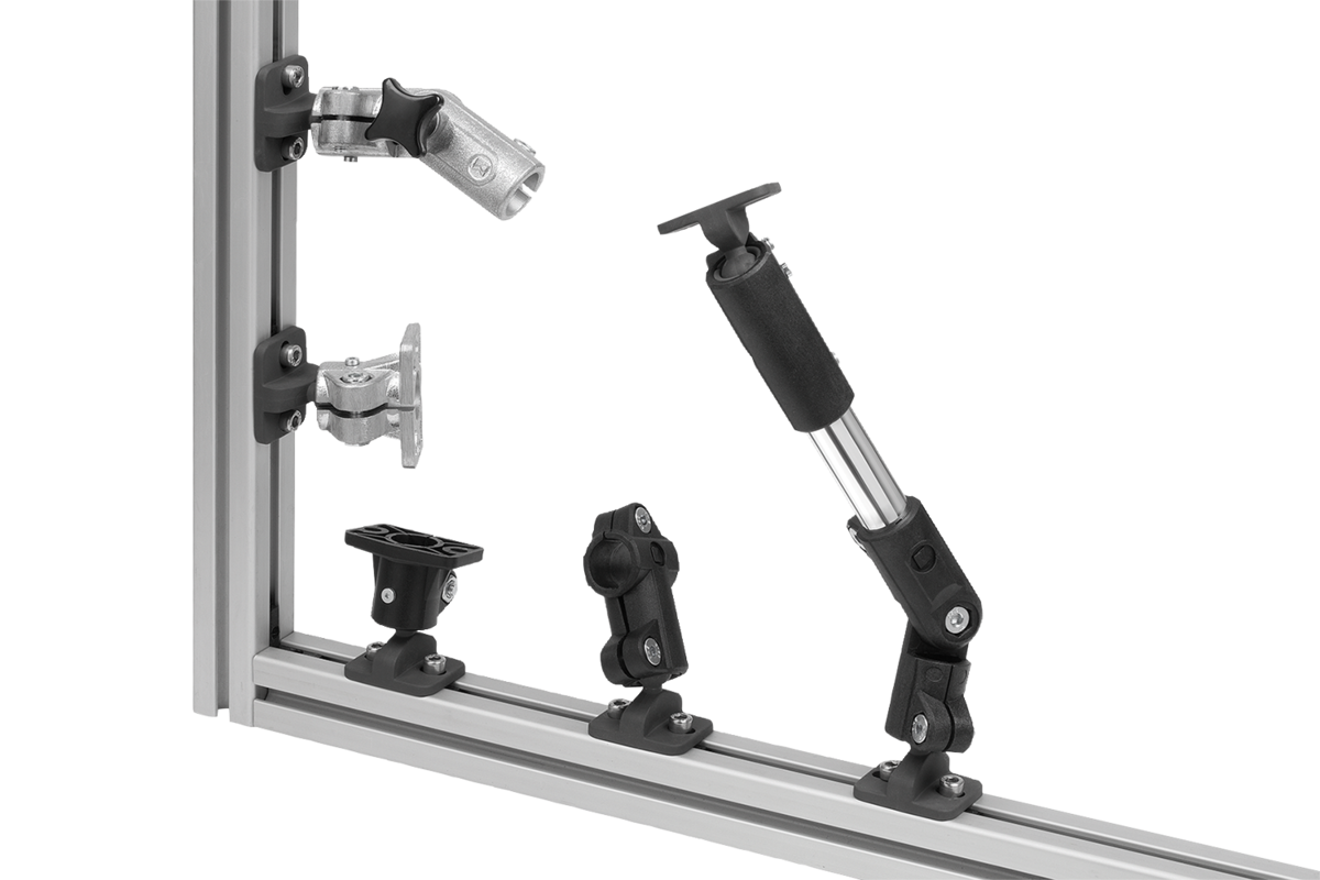 The tube clamps have a 360° rotatable connection plate on the ball joint.