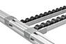 The suspension brackets are used to suspend steel roller tracks in a 40 mm aluminium profile.