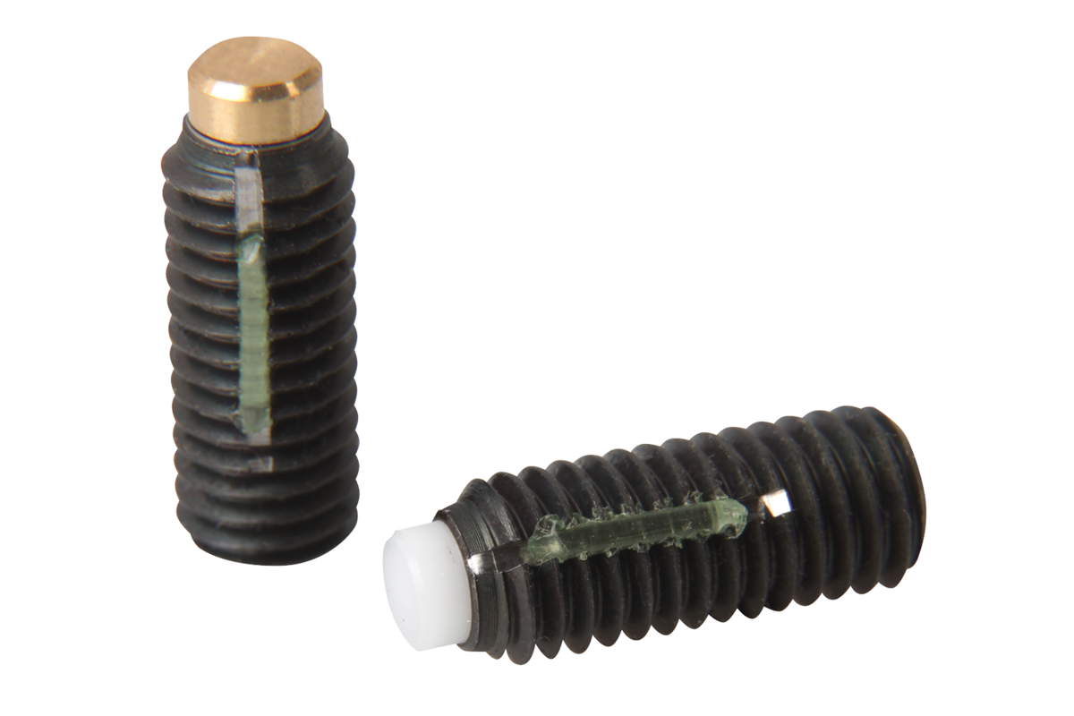 Wkręty dociskowe najlepiej nadają się do zaciskania lub dociskania długich śrub, osi, wałków i detali po obróbce powierzchniowej.