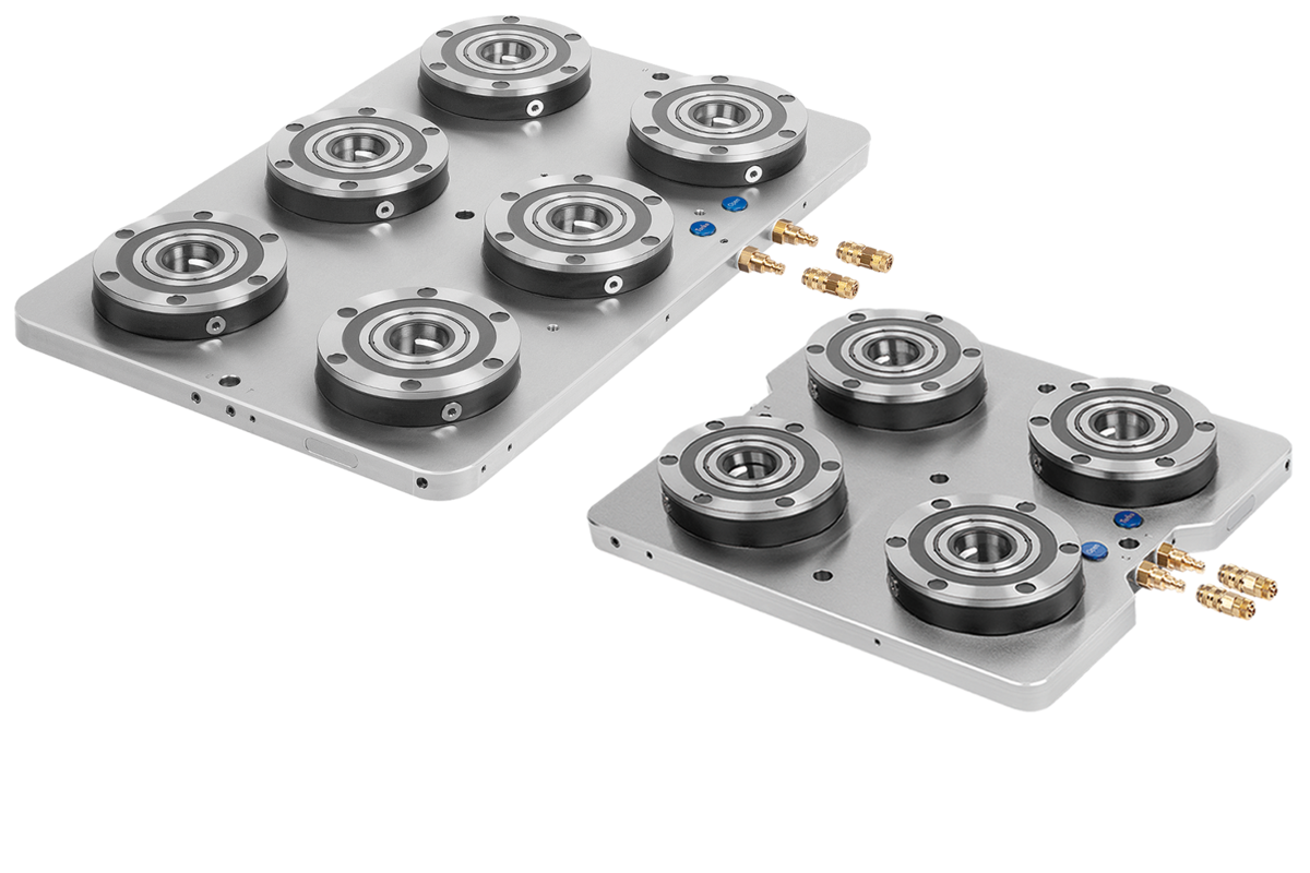 Moduły mocujące są uruchamiane centralnie, przez przyłącze pneumatyczne.