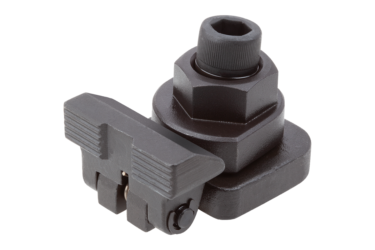 2. Przedmiot obrabiany mocuje się przez dokręcenie zacisku mimośrodowego za pomocą klucza widełkowego.