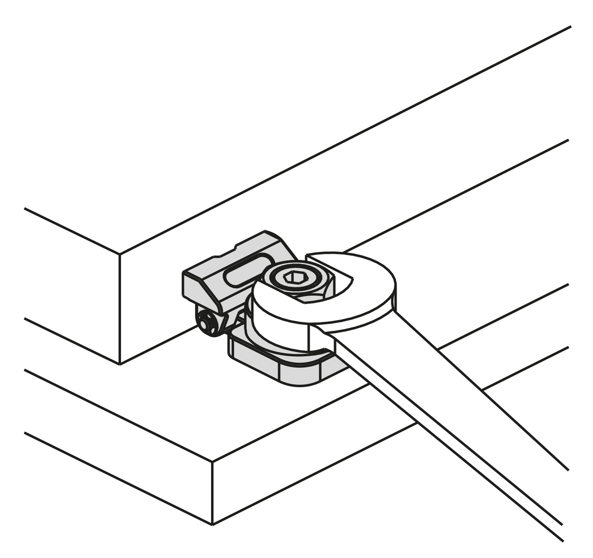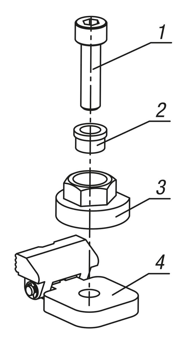 1. Włożyć śrubę mocującą do tulei z wieńcem, zacisku mimośrodowego i jednostki mocującej i przykręcić mocno do płyty bazowej.
