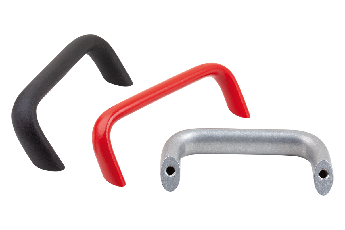 Te ukośne uchwyty kabłąkowe szczególnie dobrze nadają się do montażu w warunkach ograniczonej przestrzeni. Uchwyty są szczególnie stabilne i można je stosować tam, gdzie manipulacja wymaga mocnego chwytu.