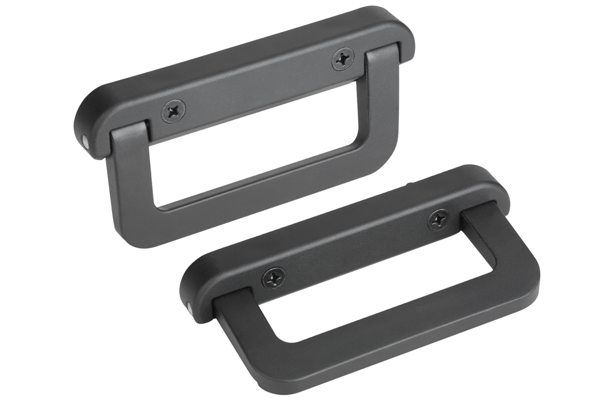 Uchwyt składany powraca samoczynnie. Nadaje się do przykręcenia na ściance obudowy.