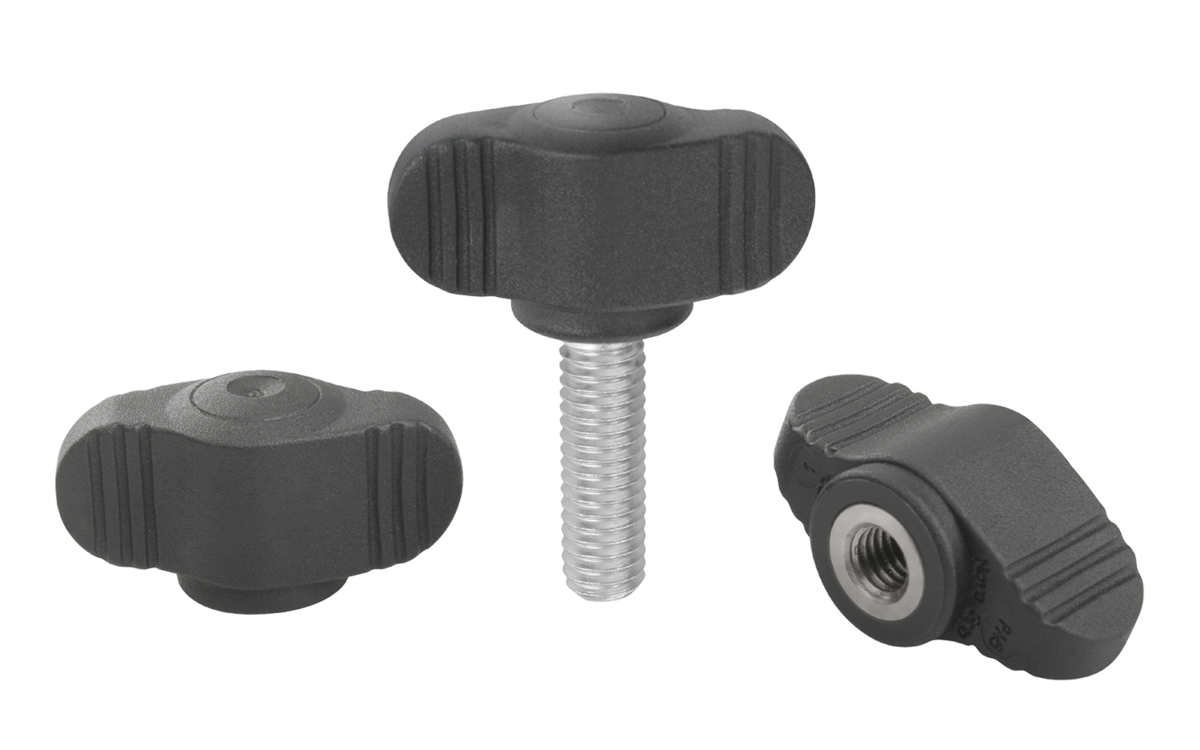 Pokrętła motylkowe „Miniwing” z gwintem wewnętrznym