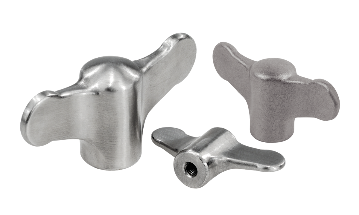 Pokrętła motylkowe z gwintem zewnętrznym.