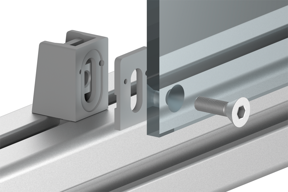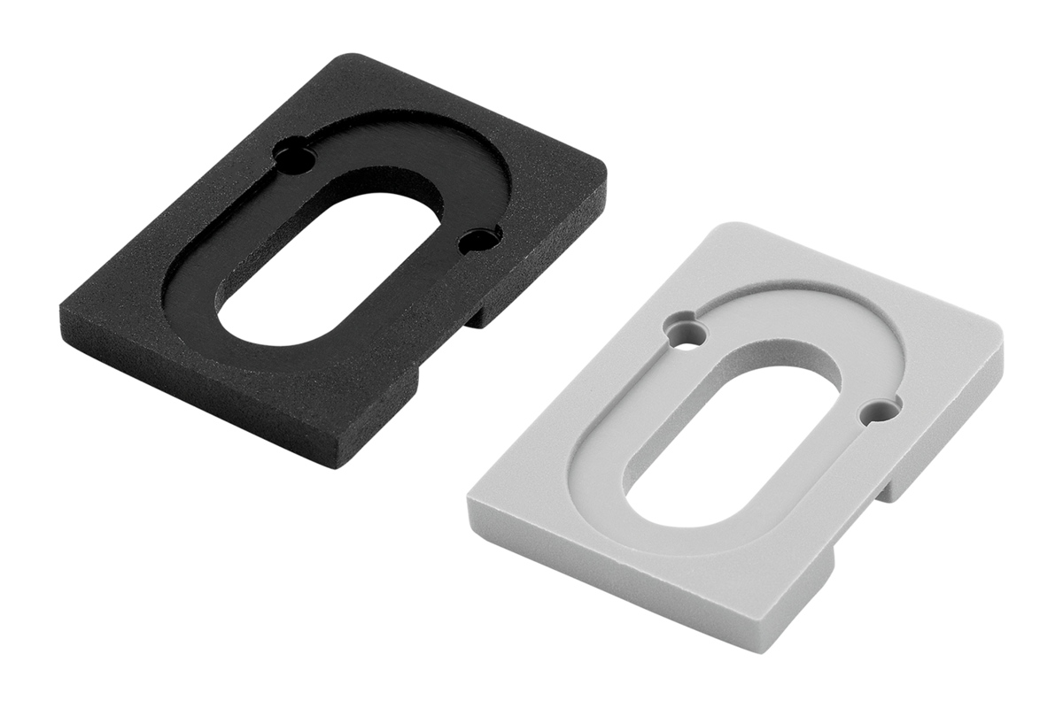 Elementy dystansowe do mocowania na uchwytach do docisków. Oznacza to, że dostępne są różne odległości od krawędzi profilu do przykręcania docisków o różnych grubościach w jednej płaszczyźnie z profilem aluminiowym.