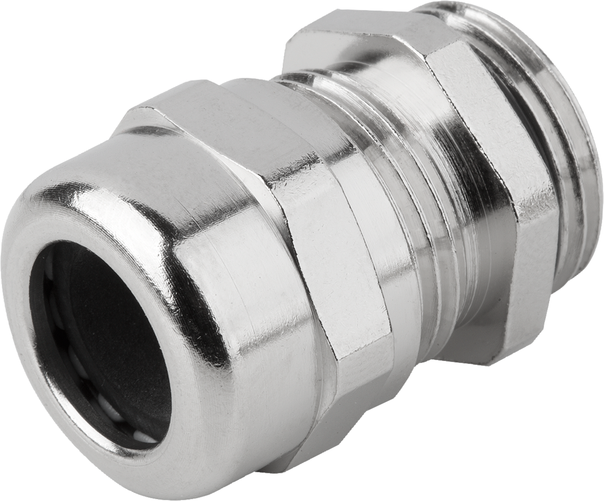 Dławnice kablowe z metrycznym gwintem przyłączeniowym wg DIN EN 60423. Do kabli i przewodów ekranowanych. Szybkie i łatwe połączenie EMC plecionki ekranującej przez sprężynę kontaktową oraz króciec pośredni do potencjału obudowy. Uszczelnienie i odciążenie naciągu zapewniają wewnętrzne lamele i pierścień uszczelniający.