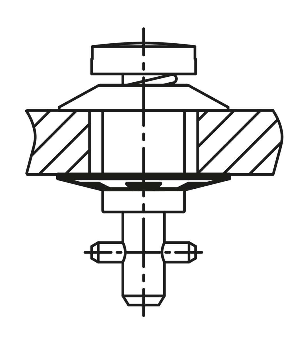 Tarcza do mocowania trzpienia zamykającego. W ten sposób trzpień zamykający jest połączony z osłoną w sposób zapobiegający zagubieniu.