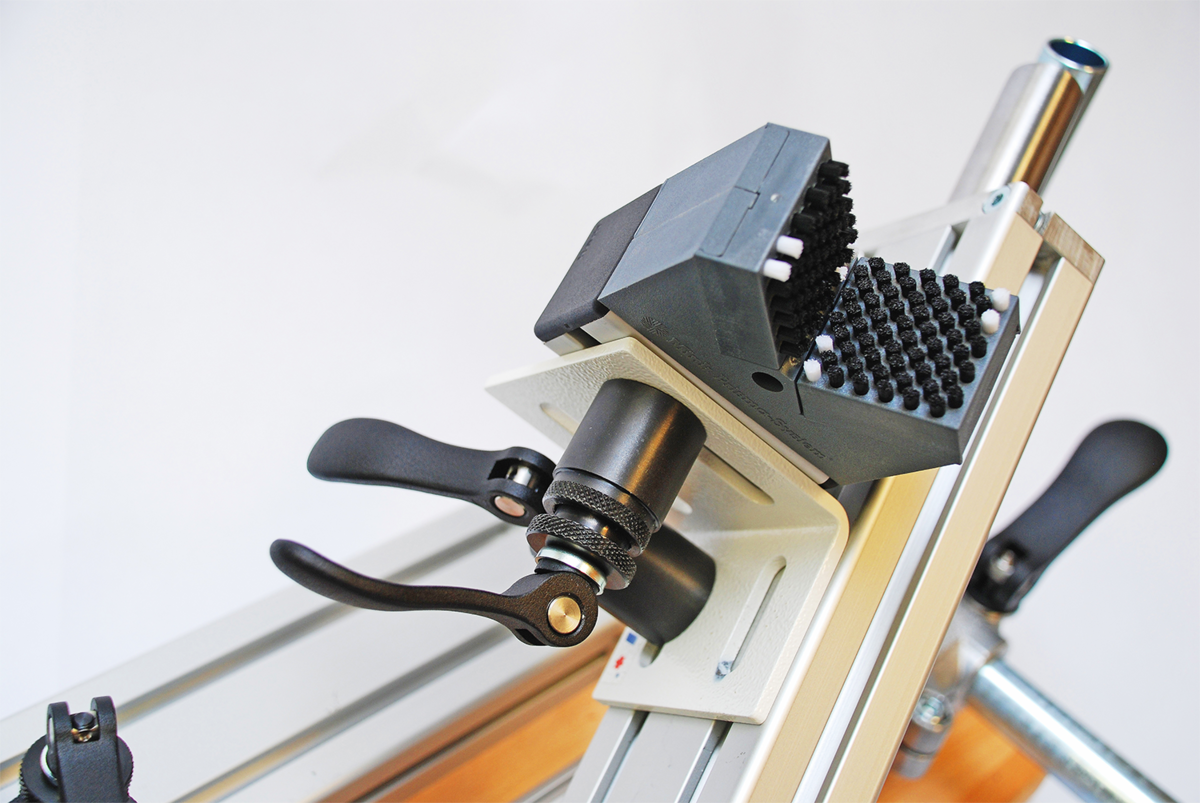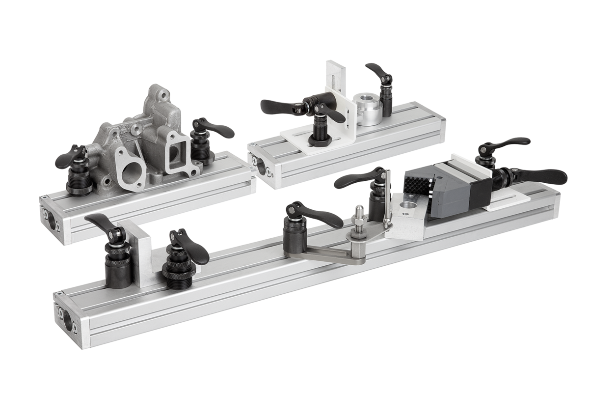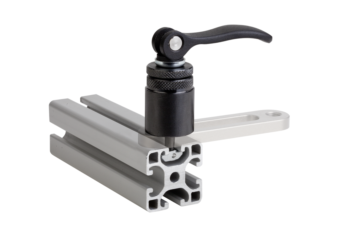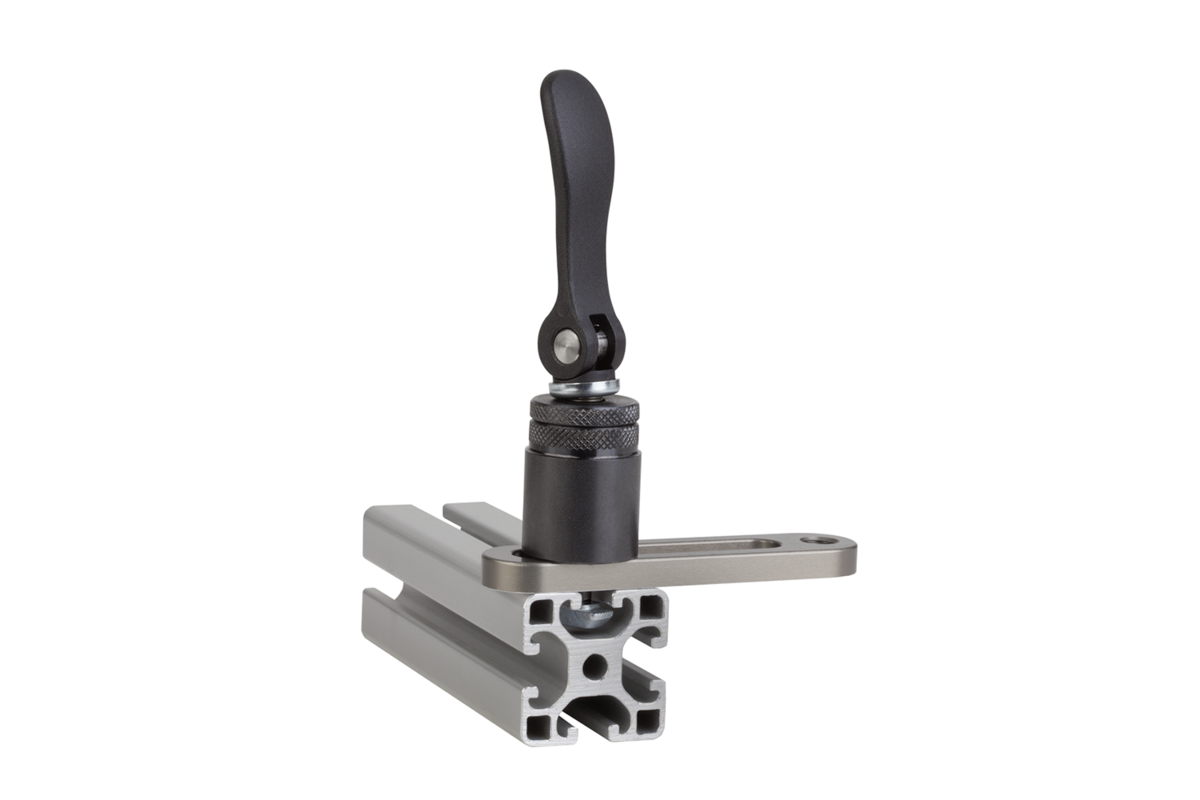 Moduł mocujący wkłada się od góry do rowka teowego i mocuje za pomocą dźwigni mimośrodowej, bez użycia dodatkowych narzędzi.