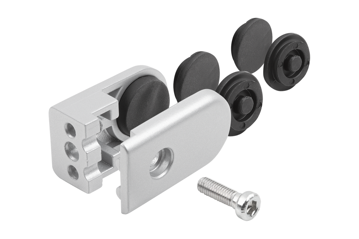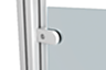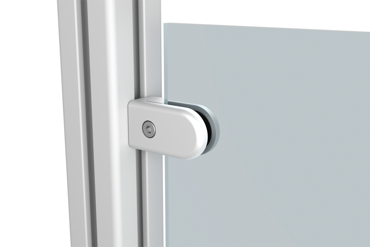 Uchwyt szyby można przymocować na płaskiej powierzchni lub profilach aluminiowych za pomocą nakrętki do rowków teowych. Za pomocą dołączonych elementów dystansowych z gumy można zaciskać dociski od 2 mm do 9 mm.